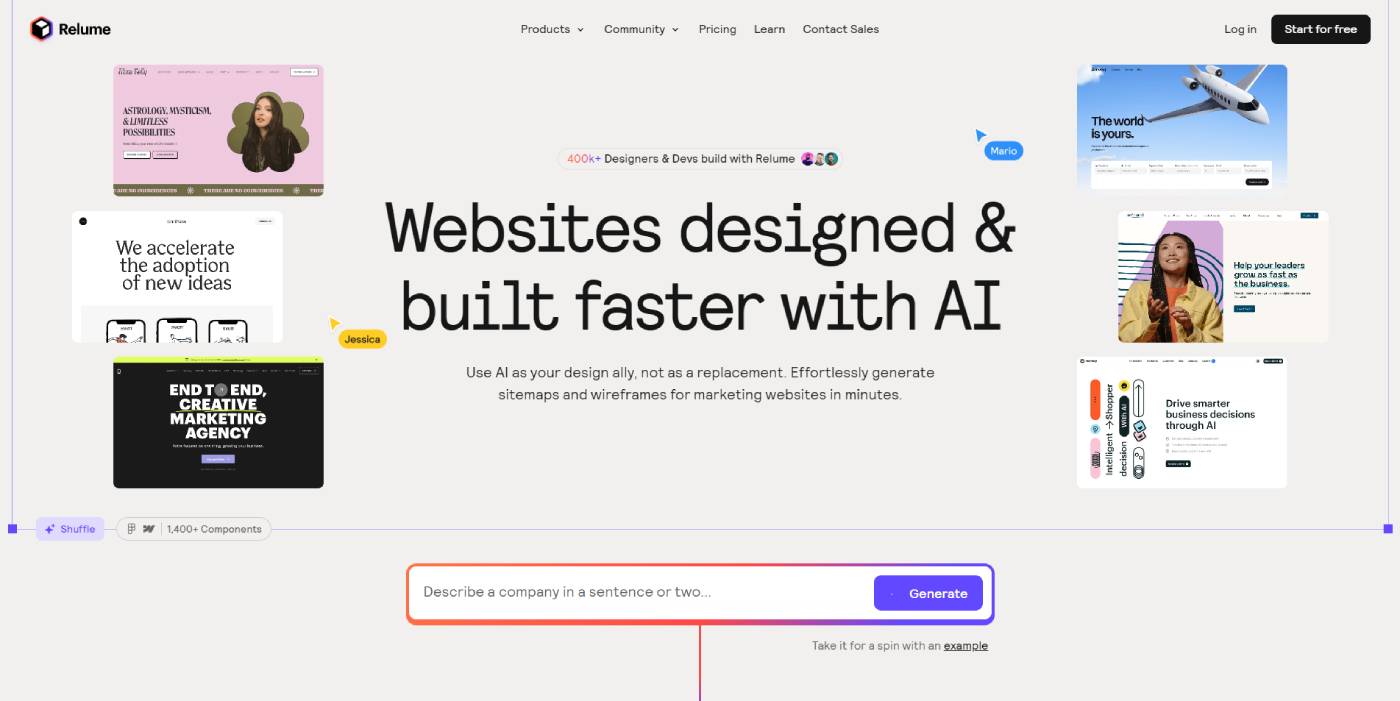 First up is Relume AI, a fantastic tool that utilizes artificial intelligence to generate wireframes. With just a single prompt, you can create an entire mock-up for a website. For instance, I created a wireframe in under a minute, showcasing how efficient and user-friendly this tool is.