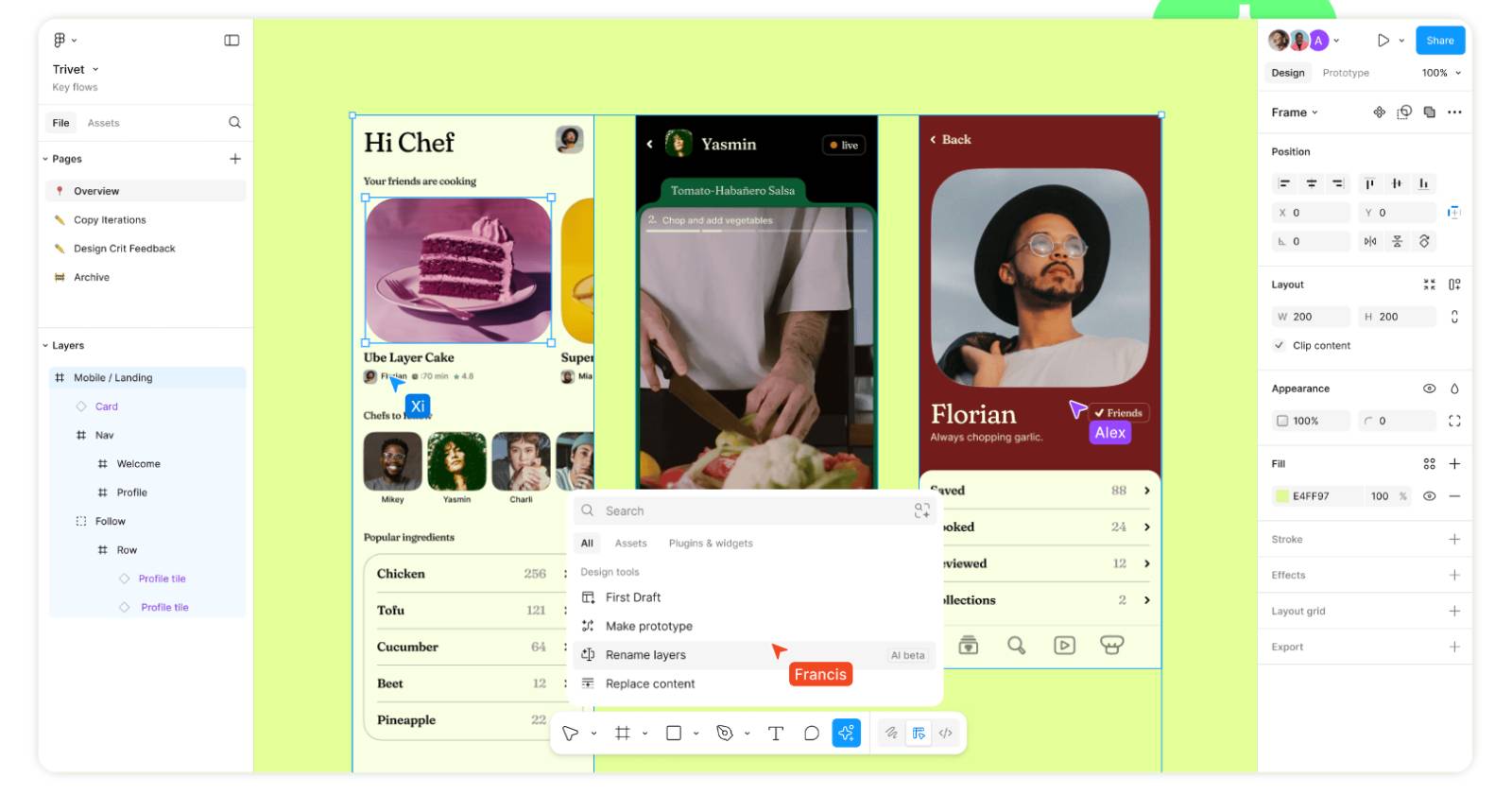 Figma is browser-based, which means no heavy installs and seamless collaboration. Multiple people can work on the same file at once, leave comments, and follow cursors in real time. It also provides a mobile companion app for previewing designs on devices and a generous free tier that is ideal for beginners and small teams. In short, Figma combines accessibility, collaboration, and professional features in one place.