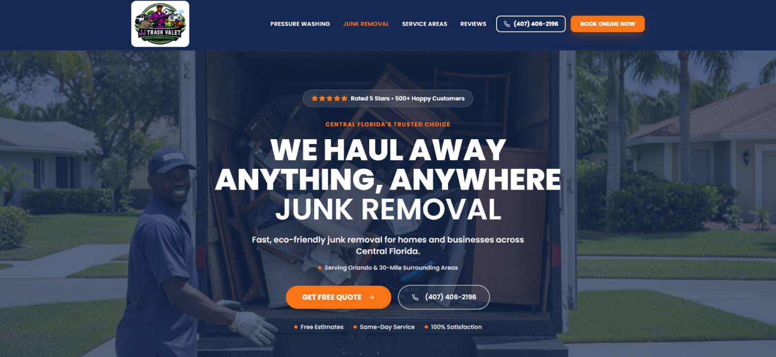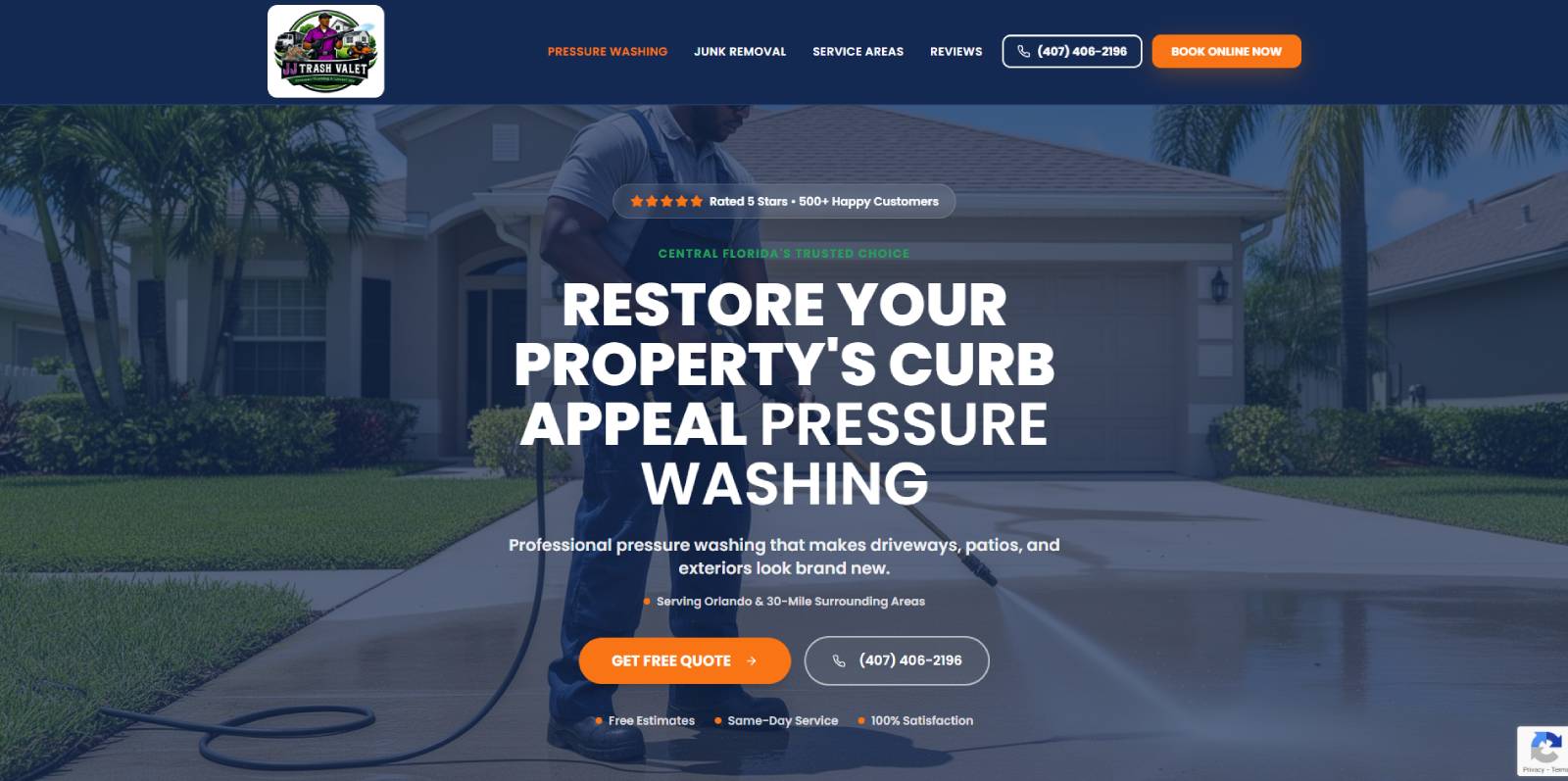 This website was designed and developed for a Central Florida service company specializing in junk removal and professional pressure washing. The goal of the project was to create a strong, trustworthy online presence that clearly highlights the company’s two core services while appealing to both residential and commercial customers.